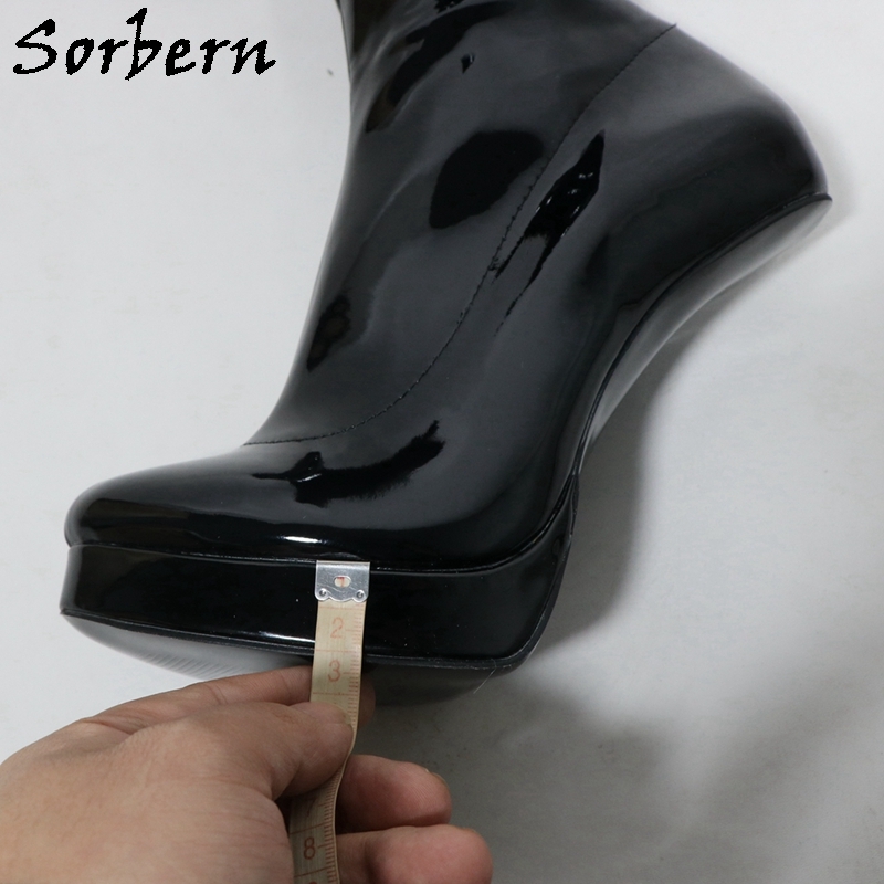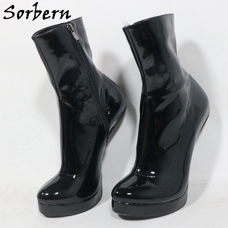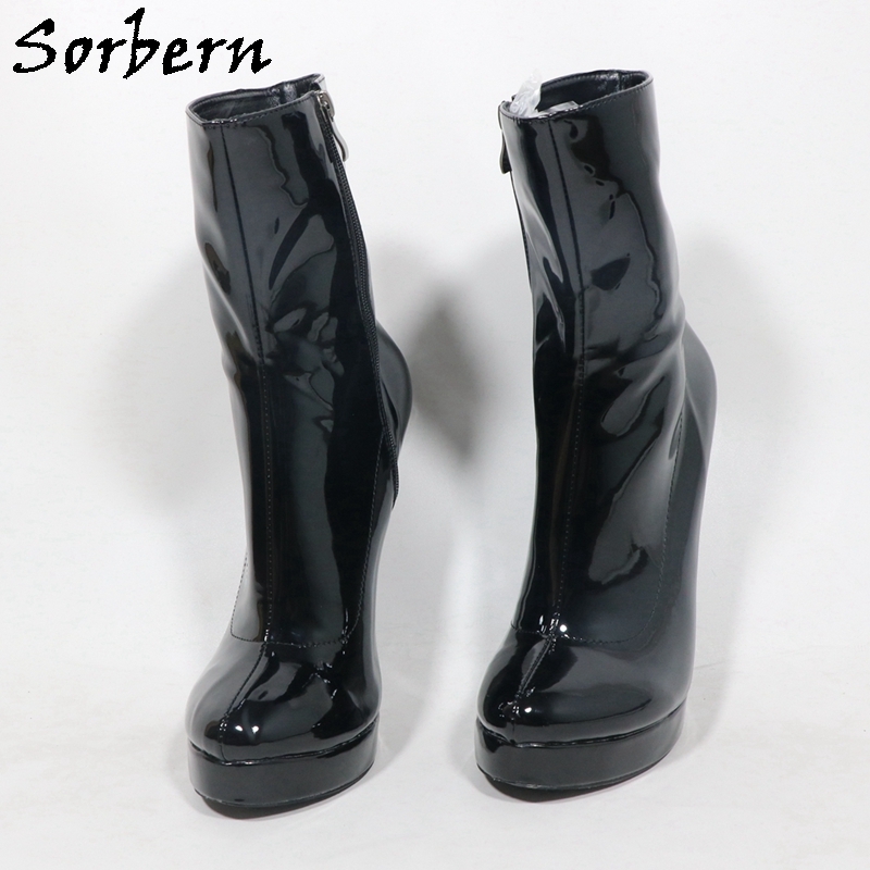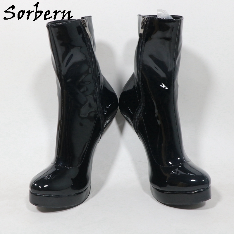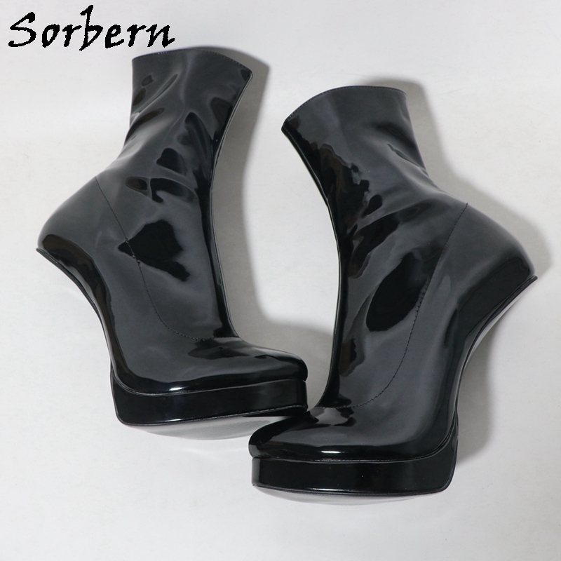 Sorbern Black Shiny Ankle Boots For Women Heelless Thin Platform Booties Custom Color