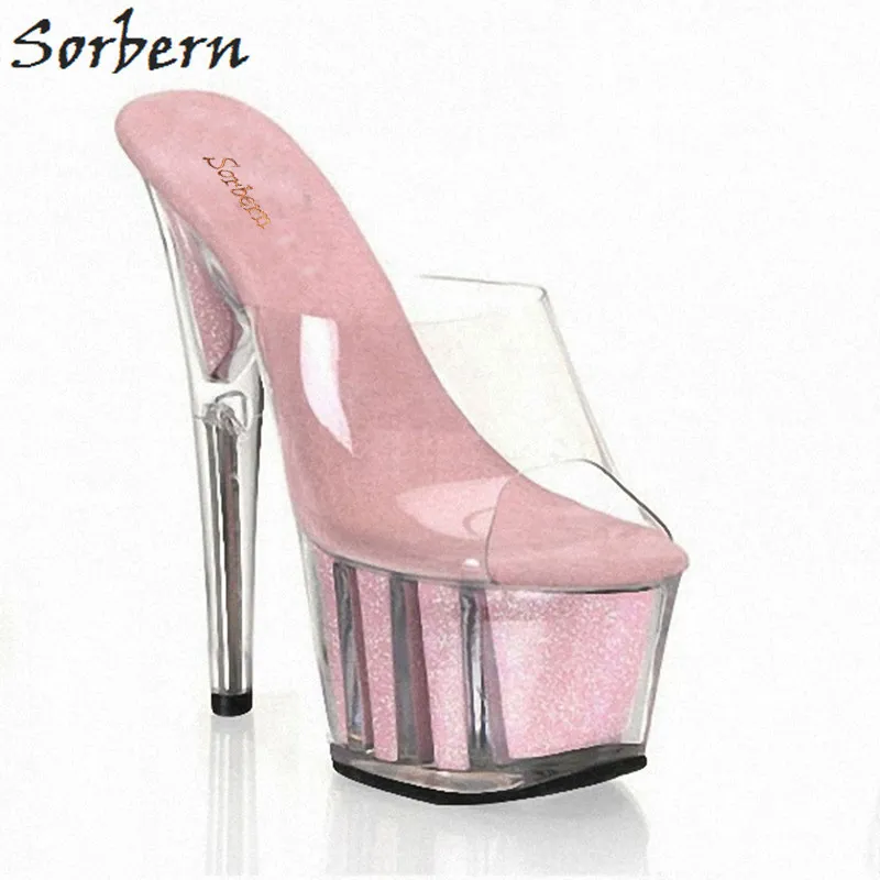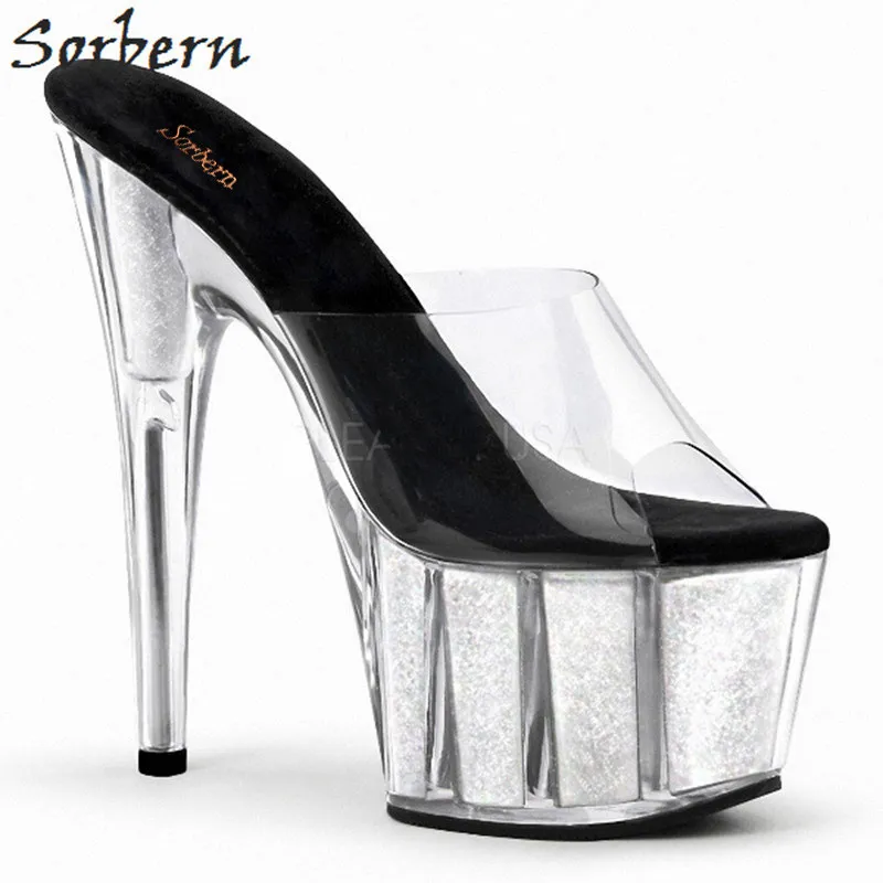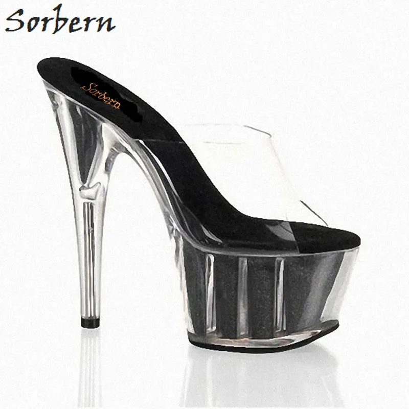 Sorbern Clear Pvc Transparent Sexy Slippers Women Clear Heels Platform Shoes Slides Women Open Toe Custom Colors Mules Stilettos