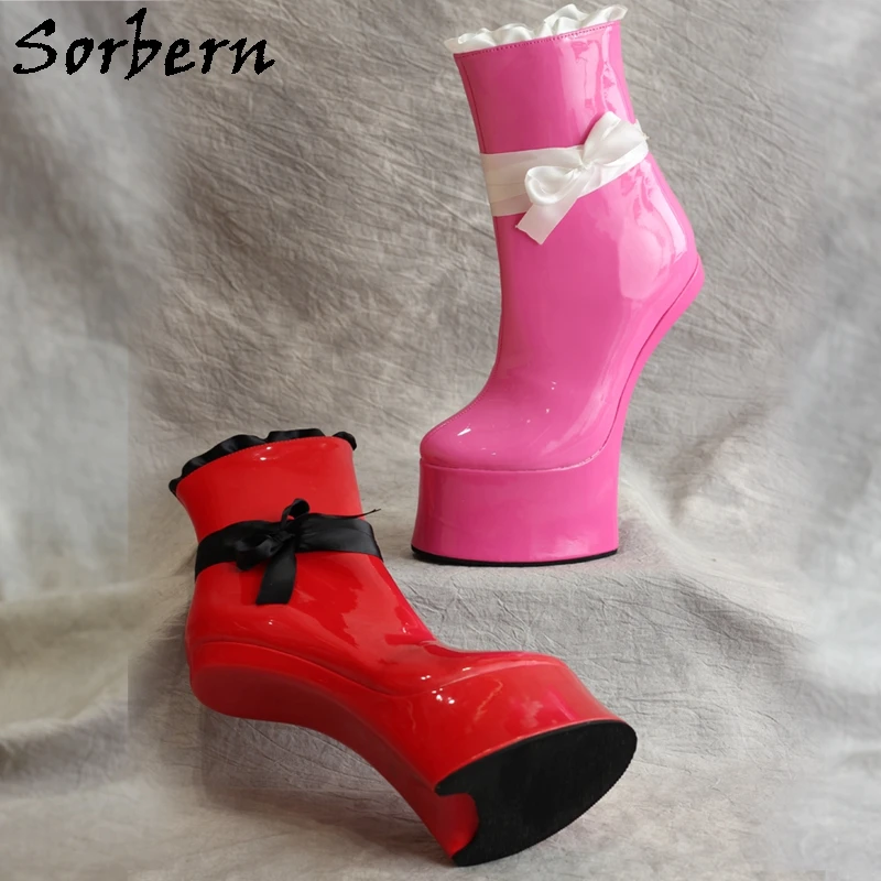 Sorbern Exotic Bowknot Horse Heel Boots Ankle High Heelless Comfortable